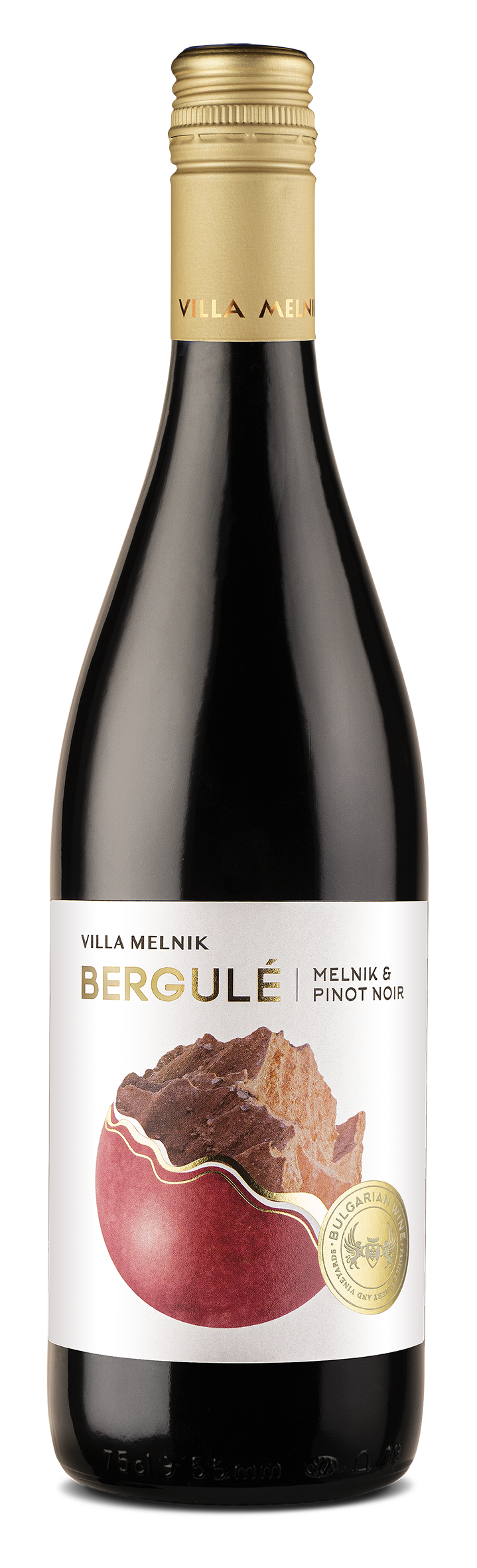 Bergulé Melnik & Pinot Noir е едно от най-интересните и модерни вина на Villa Melnik – смел, но изненадващо хармоничен бленд между местната Широка Мелнишка Лоза и благородния френски Пино Ноар. Вино без дъб, създадено изцяло в инокс, за да се подчертае чистият, плодов и благороден характер на двата сорта.